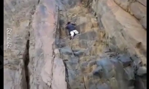 فيديو..سقوط مؤلم لشاب كان يتسلق جبل صخري
